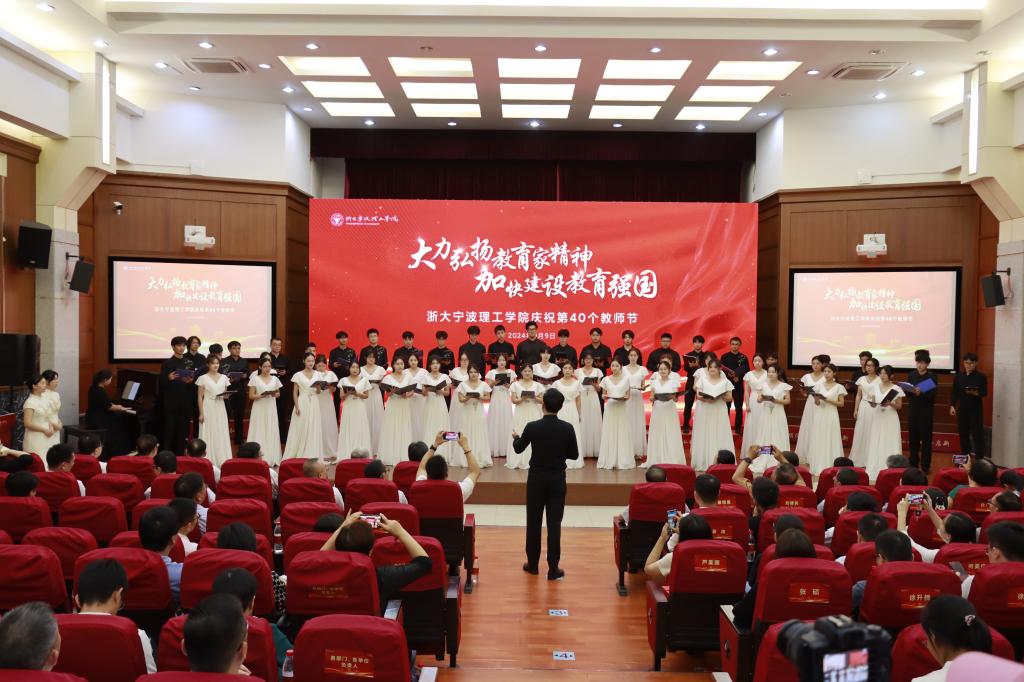 强国必先强教,强教必先强师。丹桂飘香,稻菽丰稔。学校隆重举行庆祝第40个教师节大会,向奋斗在中国高等教育事业第一线的“浙大宁理人”致以节日的慰问和最崇高的敬意。向肩负着“大力弘扬教育家精神,加快建设教育强国”崇高使命的“浙大宁理人”寄予最殷切的期望。
