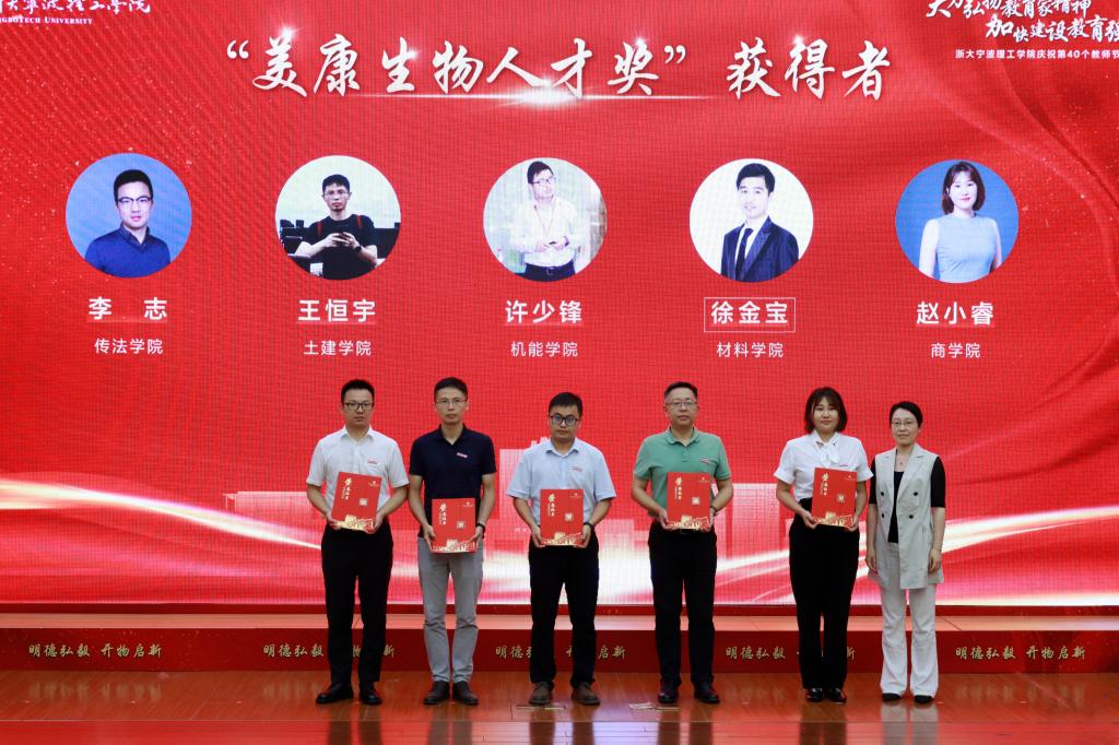 获奖教师代表徐亦冬发言,感谢学校为教师提供的良好环境,结合自身经历,告诉大家不要自我设限,努力成为多任务系统。未来希望能够在教学科研、管理服务方面,踏出更加坚实的一步,为浙大宁理的教育事业贡献更多的智慧和力量,为每一位学生的未来努力奋斗。退休教职工代表刘建民发言,衷心感谢学校和学院历届领导多年来的关心照顾,感谢老师们一直以来的关爱和友谊,也感谢浙大宁理这美丽的校园带来的无限美好的回忆和快乐。他表示,虽然退休了,但是心永远离职不离岗,关心关注学校发展,继续发光发热。