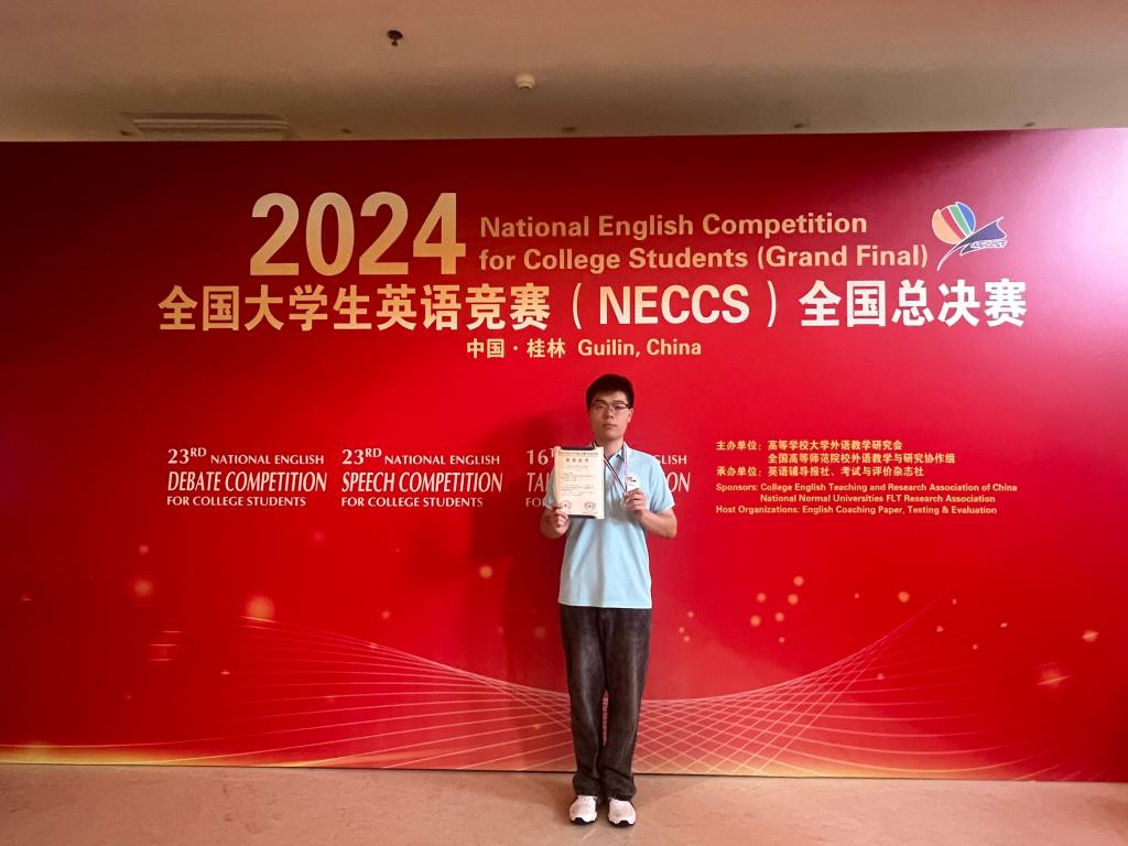 在8月份举办的2024年全国大学生英语竞赛(NECCS)全国总决赛中,开云外国语学院英语223班张忆天同学与来自全国29个省、自治区、直辖市的209所高校的367名选手同场竞技,取得了全国总决赛演讲比赛二等奖的好成绩。这是开云学子在该项赛事上取得的又一突破。