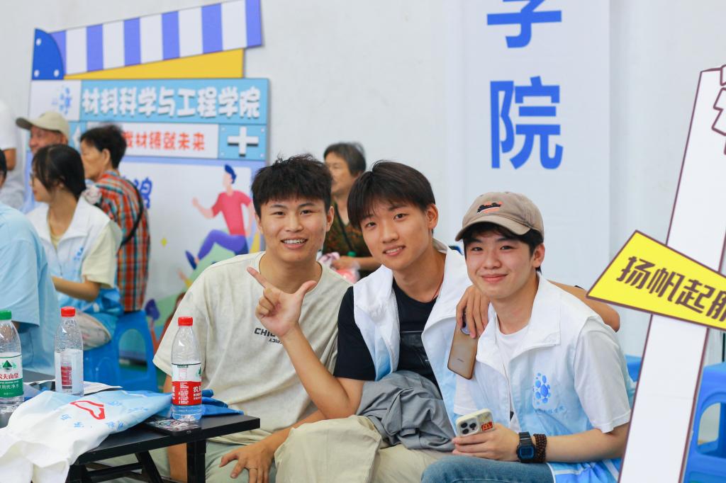 来自五湖四海的小萌新在师生志愿者的带领下,顺利完成报到从机场、车站到校园的各个角落,一个个鲜亮的服务点里,志愿者们热情的笑脸引人注目,他们身着各色院服,挥舞手中标牌向新生们展现校园活力。