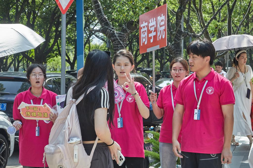 当看到站在原地踌躇的学生和家长,他们总是主动上前帮忙“总报道点往那边走”“跟我来领取军训服”“家长,我来帮您搭把手”。
