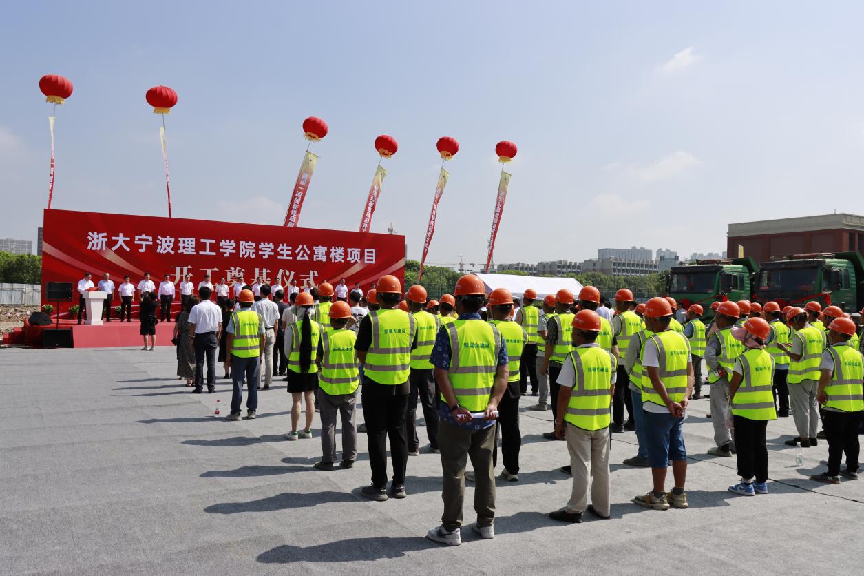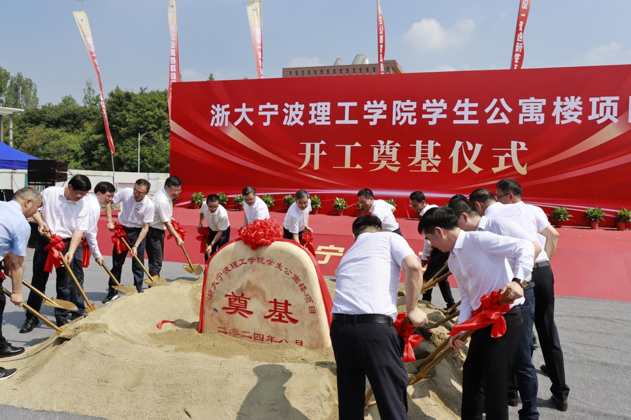 8月24日,学校举行学生公寓楼项目开工仪式。宁波市人大常委会预算工委主任竺培楠,宁波市发展规划研究院院长、党组书记陈顶祥,宁波市教育局副局长、党委委员胡斌,宁波市教育局计划财务处处长许琳,全体学校领导以及项目施工方出席仪式。