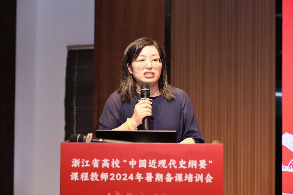 7月17日下午进行的青年教师教学展示环节,由浙江省高校“纲要”课教学研究会副会长、浙江理工大学王艳娟教授主持。
