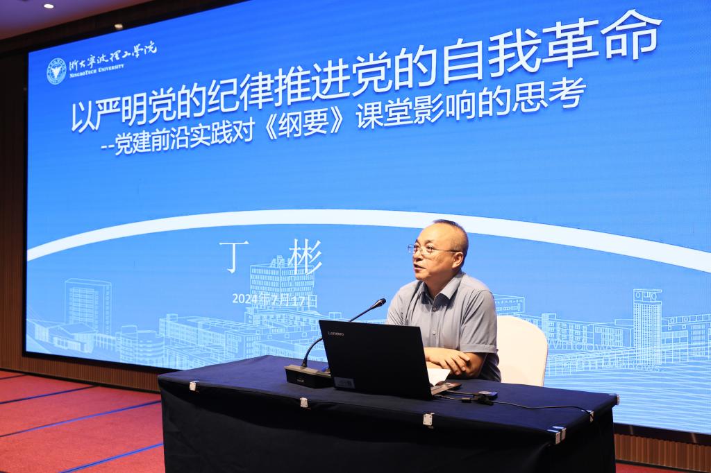 国家“万人计划”领军人才、开云kaiyun官网中共党史党建研究中心主任丁彬教授围绕“以严明党的纪律推进党的自我革命——党建前沿实践对《纲要》课堂影响的思考”作了主题发言。他首先从一百多年党史经验的规律等角度全面阐述了勇于自我革命是我党区别于其他政党显著标志的观点,强调严明纪律是我党自我革命的重要抓手,重点讲解了《中国共产党纪律处分条例》修订的重大意义、重点内容、重要指引等内容。丁彬教授的发言把党建实践和“纲要”课教学联系起来,拓展了课程建设的思路和内容,带动了参会教师积极思考和交流探讨。