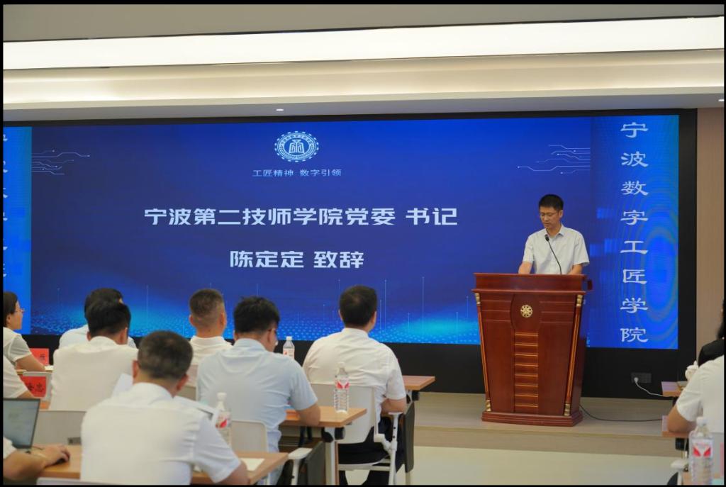 7月2日,在宁波市总工会支持下,学校与宁波市数字信息产业工会、海曙区总工会、宁波第二技师学院联合共建的“宁波市数字工匠学院”成立仪式暨首批学员培训班开班仪式在商学院举行。宁波市总工会党组成员、副主席宋雁,学校党委副书记杨国富,宁波第二技师学院党委书记陈定定、副院长付娴等市总工会、合作院校和企业领同出席成立仪式。