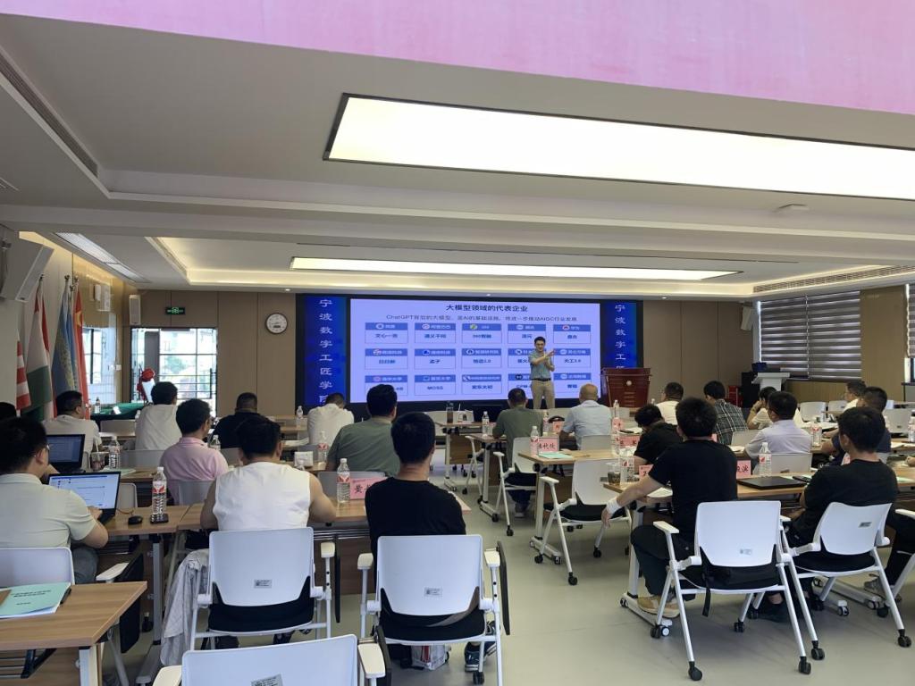 成立仪式结束后,学校特聘讲师崔伟博士为学员做《人工智能的技术架构与行业应用》报告。学院后续将推出一系列数字经济、数字技术相关的培训活动。