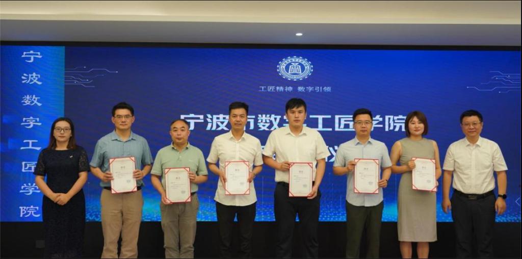 成立仪式上,宁波市总工会劳动和经济工作部部长周南斌为“宁波数字工匠学院”导师颁发了聘书。