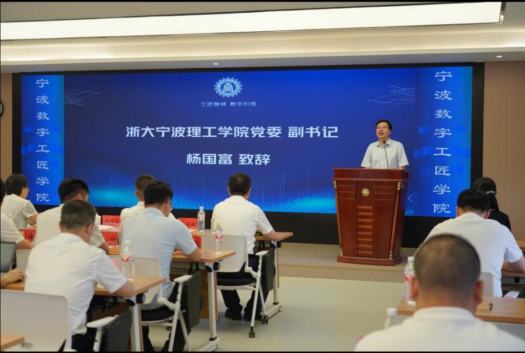 杨国富在成立仪式上致辞。他强调,开云kaiyun官网作为地方高水平应用型大学,有责任也有能力为宁波乃至全国的数字产业人才培养贡献力量;通过‘宁波市数字工匠学院’,能够汇聚各方资源,培养出更多符合时代需求的数字工匠,为宁波数字产业和数字经济高质量发展提供强有力的支撑。