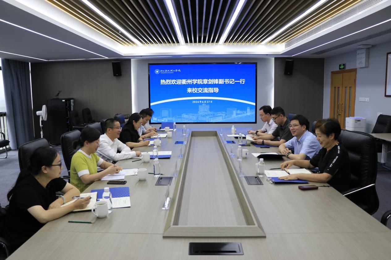 6月27日,衢州学院党委副书记章剑锋一行来校调研交流,学校党委副书记杨国富参加调研并座谈。