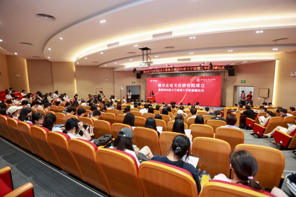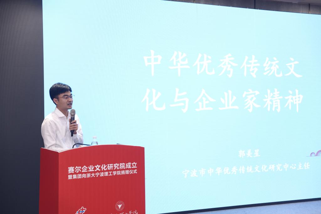 宁波市委党校副教授郭美星为在场师生就“中国传统文化与企业家精神”做主题讲座。徐平炬作“赛尔为什么倡导企业文化”讲座,就赛尔集团的企业文化核心与可持续的创新发展理念对浙大宁理师生进行分享。