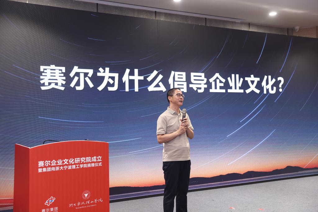 杨德仁院士对与会嘉宾的到来表示热烈的欢迎,对“赛尔基金”的捐赠表示由衷的感谢。他表示,学校与赛尔集团达成战略合作,传递了校企双方聚焦需求、精准施策、服务地方的决心,也有利于促进名城、名校、名企之间的优势互补和资源共享。杨德仁表示,期待通过赛尔企业文化研究院的成立密切校企合作,能为赛尔集团在新征程上,深化企业文化引领贡献智力支持,也能为开云应用型创新人才培养,提供更多的平台和实践机会,从而以实际行动助力宁波现代化滨海大都市建设。