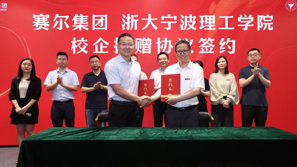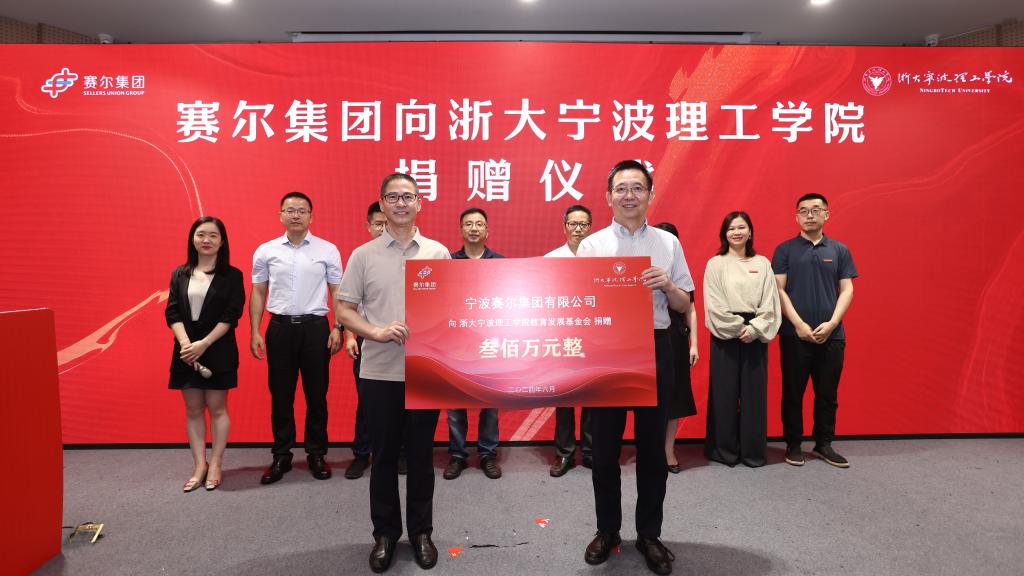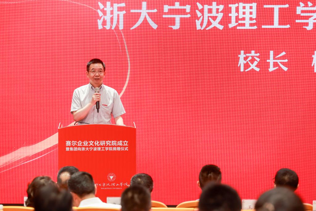 6月19日下午,学校举行赛尔企业文化研究院成立暨赛尔集团向学校捐赠仪式。原市政协副主席、市甬商发展研究会会长张明华,宁波市政府研究室、宁波市工商联、商务局、贸促会,赛尔集团董事长徐平炬,以及学校校长杨德仁院士,副校长鲁东明,学校相关部门、学院负责人,教师代表、校友代表参加仪式。