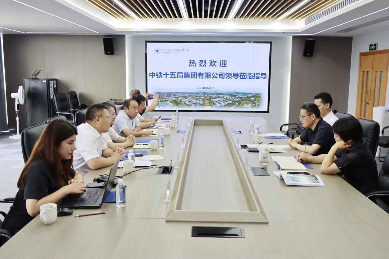 6月18日,中铁十五局集团有限公司浙江指挥部指挥长王恒军一行来校调研交流。学校副校长鲁东明参加调研并座谈。