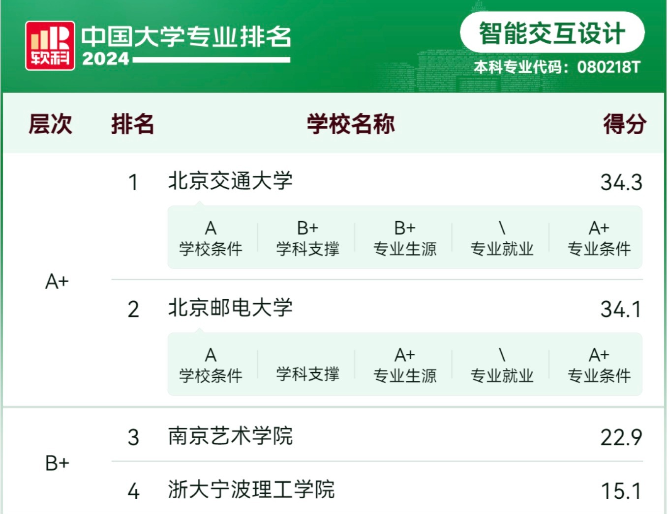 日前,高等教育专业评价机构软科正式发布“2024软科中国大学专业排名”,开云智能交互设计专业排名全国第4位,这是开云智能交互设计自2023年招生以来首次获得大学专业评价机构排名。