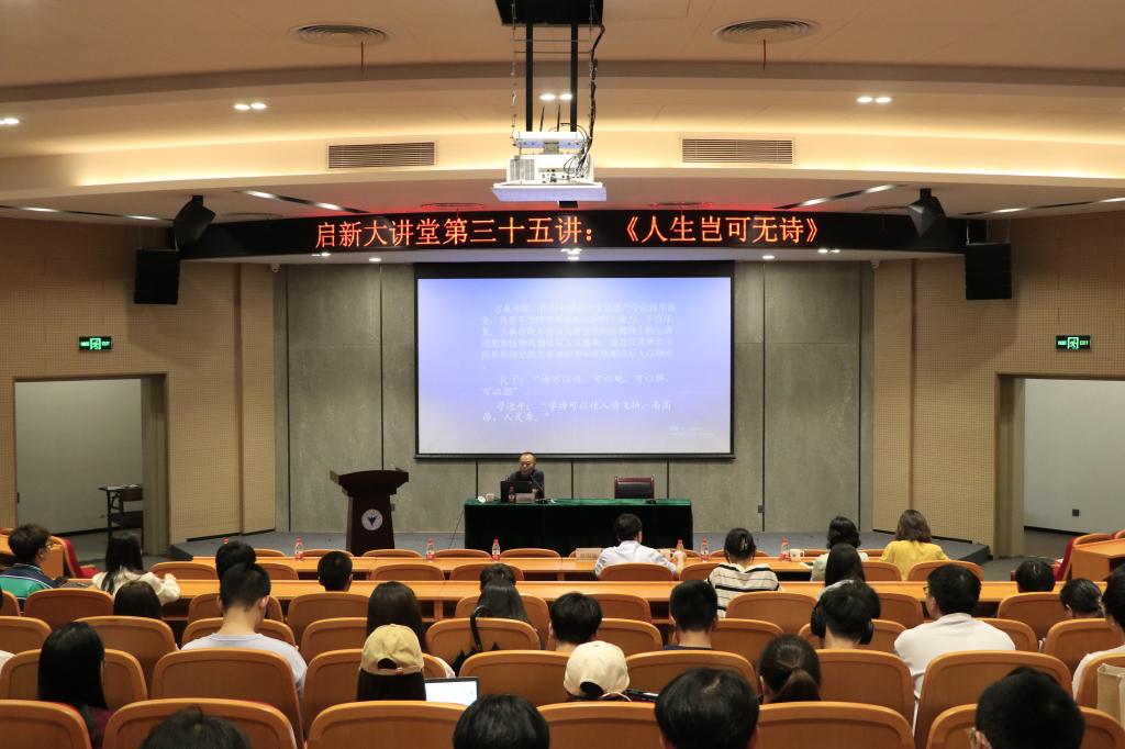 为深入学习贯彻习近平文化思想,落实立德树人的根本任务,坚定师生文化自信,6月5日下午,浙江工业大学学术委员会副主任、浙江大学中文系博士生导师肖瑞峰教授做客启新大讲堂,作题为《人生岂可无诗》的专题讲座,200余名师生认真聆听了讲座,反响热烈。学校党委副书记杨国富主持。