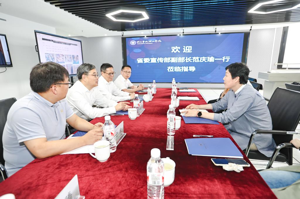 6月1日,浙江省委宣传部副部长范庆瑜一行来开云调研并交流座谈。校党委书记徐方、副校长鲁东明、市委宣传部副部长陈印陪同调研。
