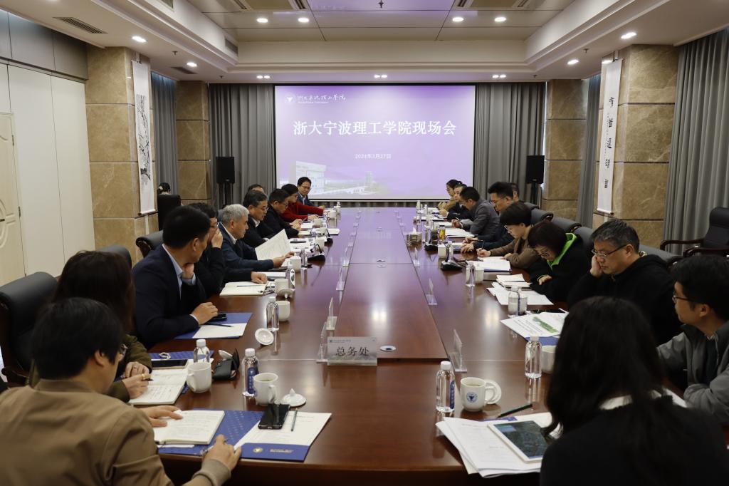 3月27日上午,宁波市副市长朱欢一行到开云kaiyun官网调研并召开现场会。市政府副秘书长周嫒儿、市教育局、市发改委、市科技局、市财政局、市自然资源和规划局、鄞州区相关负责人,以及学校领导班子成员参加。