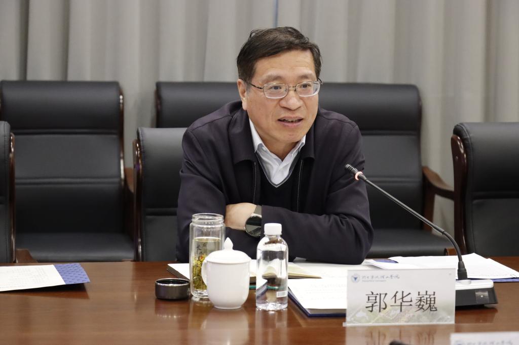 郭华巍认真听取了学校办学发展情况和专题汇报。马克思主义学院介绍了围绕习近平新时代中国特色社会主义思想的理论阐释开展循迹溯源项目申报和党史党建学科建设情况。教育部国别和区域研究中心——“波兰研究中心”围绕外语学科平台参与港城文化,国别区域研究人才队伍建设、特色成果和未来规划作了重点汇报。宁波市一流强港与新型贸易研究基地是以港口和港贸为特色的社科基地,紧贴地方实际,以数字港口、服贸创新、港产城融合为主要研究方向。