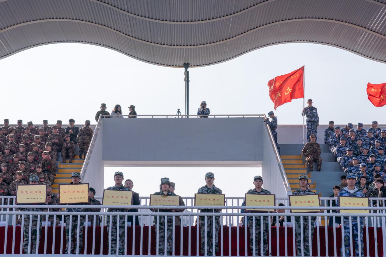 张荣祥宣读嘉奖令,并为优胜集体颁奖。应中元作军训总结。他表示,在军训过程中,军训团一手抓军事训练,按计划高质量完成军事训练科目;一手抓政治工作,开设爱国教育、安全教育讲座,组织开展“军训手账PK赛”、合唱比赛、拔河比赛等文娱活动。整个军训期间秉持“以生为本”的理念,克服带训教官经验不足、天气恶劣、时间紧任务重的“三大困难”。全体参训学员刻苦训练,圆满完成军训各项任务。他希望学员们能把军训中练就的意志品质、纪律作风、良好习惯代入新学期的学习生活,以新姿态开启新篇章。