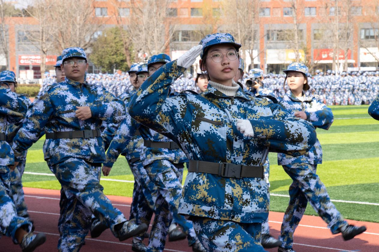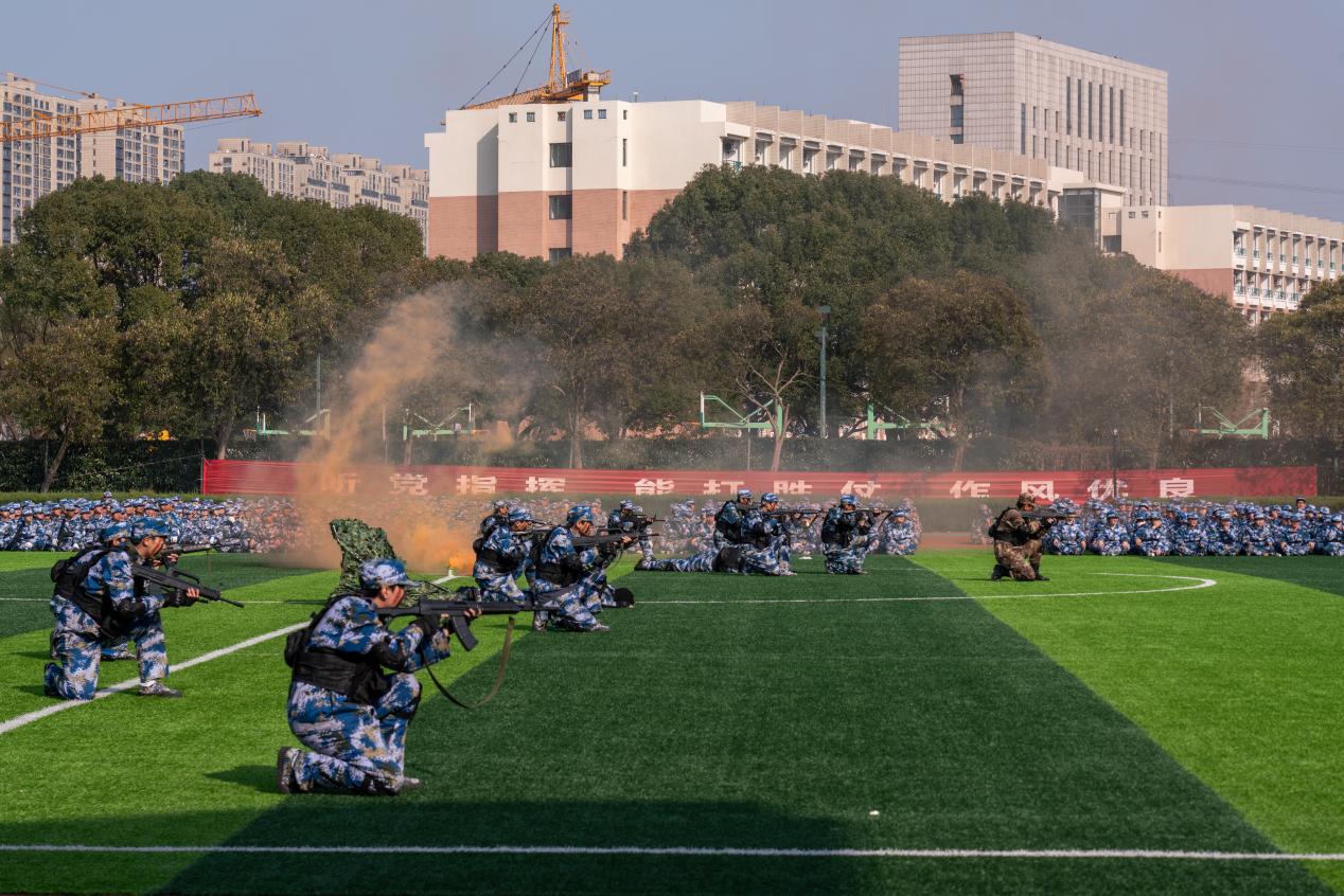 伴随着《中国人民解放军军歌》,学员们步履铿锵,依次走过观礼台。他们昂首向前、目光如炬,以最好的姿态汇报近半个月的军训成果。团体操、军体拳、战术表演,学员们的精彩表演赢得了现场热烈的掌声。
