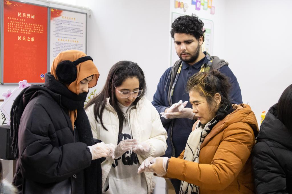 活动现场,国际生和当地居民齐聚一堂,一起体验包汤圆、猜灯谜活动。同时他们还体验了投壶、套圈等传统游戏项目,感受到浓浓的中国传统节日氛围。