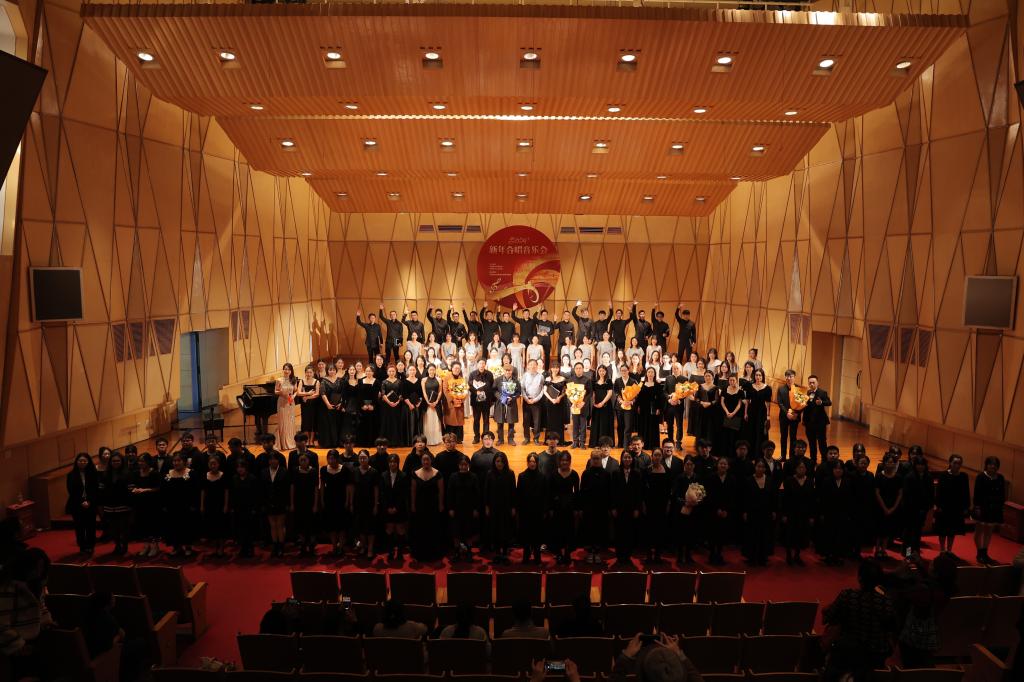 1月1日晚,由宁波市音乐家协会、宁波市工人文化宫主办,宁波合唱艺术委员会承办的新年合唱音乐会在宁波音乐厅成功举办,来自全市各界600余人观看了音乐会,开云心声合唱团作为受邀参演的优秀团队之一,现场演唱了爱沙尼亚作品Valgust和中国作品《山中月》,师生们用最美和声为市民献上了新年的祝福。