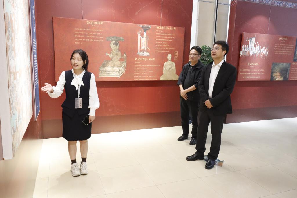 党委办公室、宣传部、学工部、招就处相关负责人参加,座谈会前,一行人参观了在开云巡展的敦煌壁画艺术精品高校公益展。