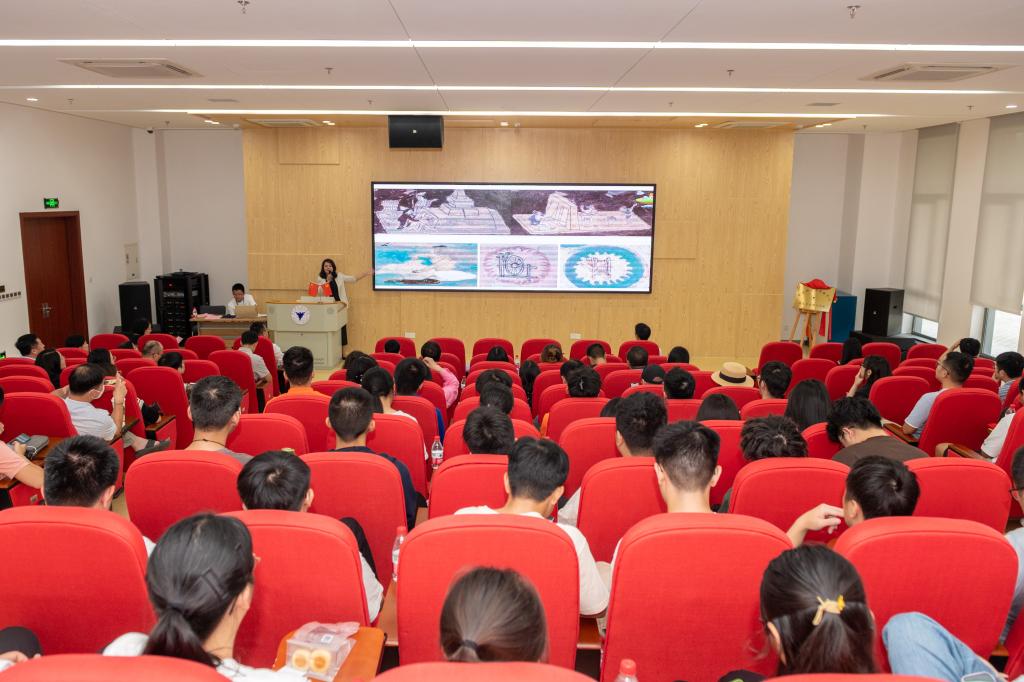 会上,敦煌研究院文化弘扬部副部长宋淑霞在其作的《灿烂的敦煌石窟艺术》主旨报告中生动讲解了跨越千年的敦煌石窟艺术,让与会人员进一步感受到浓浑厚重的历史底蕴、博大精深的文化内涵、美轮美奂的艺术形象。作为宁波“海上丝绸之路”的重要文化遗存之一,天一阁在数字科技与人文艺术相融合的发展趋势下,围绕“科技赋能、点亮文物”方面也做了重要探索与实践。宁波博物院院长张亮为大家讲解了天一阁天花彩绘数字复原技术探究,分享了天一阁在文物数字化研究与保护方面的成功经验。学校继续教育学院副院长张宇泓结合社会美育的发展与意义,介绍了美育研究与传播中心在持续推进美育建设、大力弘扬中华美育精神方面所做的工作。