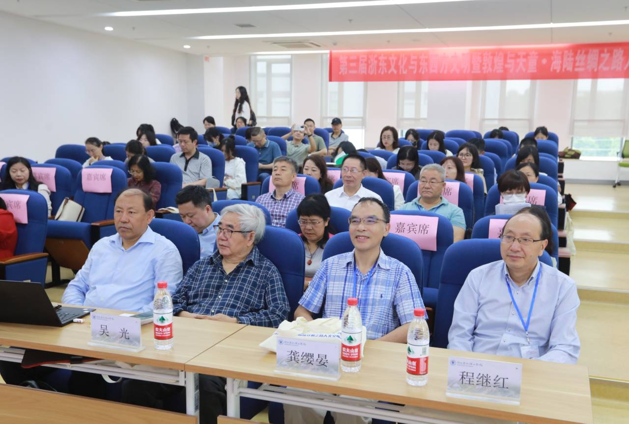 9月23日上午,在学校学术交流中心,第一场关于敦煌学的学术交流与观点碰撞在此展开。这场以“敦煌与天童・海陆丝绸之路人文交响”为主题、为期两天的研讨会,是宁波市社科界第十届学术大会学术活动的重要组成部分。宁波市第十五届政协副主席张明华、学校副书记黄光杰、宁波市社科院(社科联)副主席、副主席蔡骋宇代表主办单位分别致辞。来自各高校与单位的专家学者济济一堂,聚焦敦煌学和天童文化研究,就海陆丝绸之路的时代价值、浙学与多元文明互鉴、浙东文化与东西方文明、浙东文化与港航文明等议题展开研讨,共同探索以敦煌与天童为代表的海陆丝路文化资源宝库以及中华优秀传统文化的创造性转化和创新性发展。