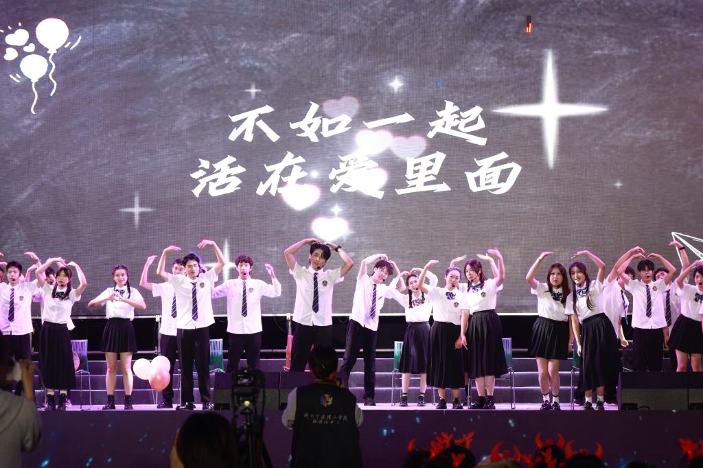 过去的智慧,在此传承,今天的拼搏,在此聚力。歌曲《想要的一定实现》《浙大宁理式青春》唱出了青春的朝气、求知的锐气;舞蹈《田间斗笠》、相声《学艺》演绎着自然与世界的美好,讲述着投身无涯学海的探索精神;武术与古琴《武·韵》的完美融合,让我们看到了中华文化包容万象的气度,传递出中华民族自强不息的精神。聚光灯下,同学们的精彩表演迎来阵阵欢呼声和掌声,与现场数千闪烁的荧光辉映成趣,共同绘就一幅奋斗者之歌的动人景象。