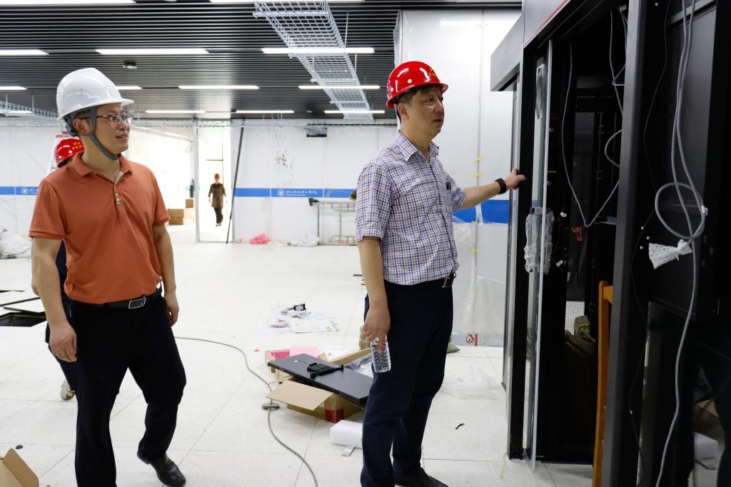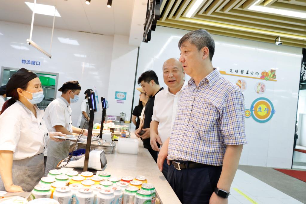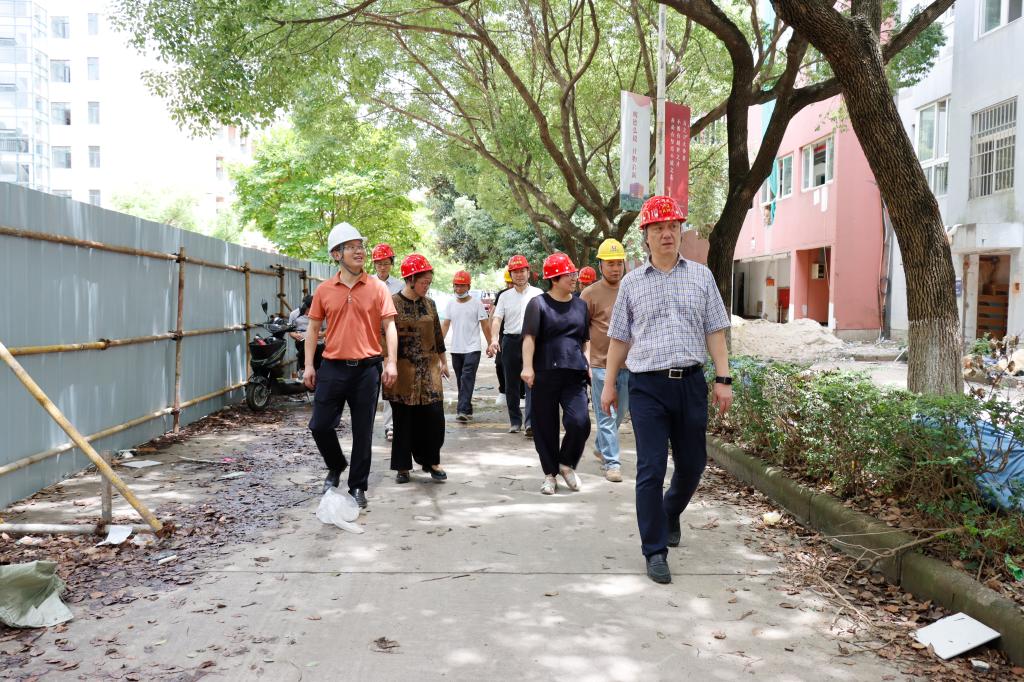 今年暑期,学校紧锣密鼓开展校园修缮提升工程,范围广,任务重,同时对后勤服务保障也提出了更高要求。7月25日,党委书记胡征宇、副校长胡余波等走进服务保障和施工场所,慰问不畏酷暑、坚守岗位的一线工作人员,检查安全生产情况。