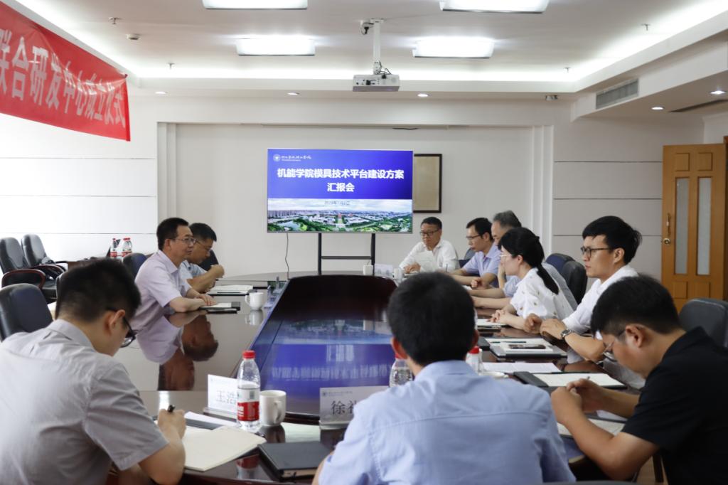 杨勇从宁波市模具产业概况及需求、研究基础和现状、平台建设方案、平台建设目标和计划等方面汇报了“模具与轻量化材料制造技术平台建设方案”。科研处、机能学院相关负责人就学校模具技术平台建设与企业行业的引领带动、积极构建模具技术平台的核心竞争优势、加强和相关科研院所的交流、完善运行机制等方面进行了发言交流。模具科研团队教师代表从实验场地、科研设备、科研团队、行业协会等方面汇报了机电与能源工程学院模具技术平台的特色优势和困难瓶颈。