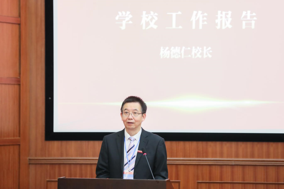 杨德仁作题为《克难勇进 创新奋进 一体推进 协同共进 加紧加快建设一流创新性应用型大学》的工作报告,全面回顾和总结上一年度学校发展情况,再次强调2023年学校重点工作。报告指出,2022年学校坚持以习近平新时代中国特色社会主义思想为指导,学习宣传贯彻党的二十大精神,践行习近平同志2002年来校调研时重要指示精神,推动党建与事业融合发展,全面落实“十四五”发展规划,加快推进两个学科群建设,全力冲刺硕士点申报,深化办学治校数字化改革,在教育教学、科学研究、社会服务等方面取得重要进展,办学实力和水平稳步提升,为支撑区域经济社会发展作出了应有贡献。2023年,是全面贯彻落实党的二十大精神的开局之年,是浙江实施“八八战略”20周年、宁波“争创市域样板、打造一流城市、跻身第一方阵”的关键之年,也是学校实施“十四五”发展规划的中局之年。全校上下要紧扣主题教育“学思想、强党性、重实践、建新功”总要求,用党的创新理论统一思想、统一意志、统一行动,持续深入学习贯彻习近平总书记关于教育工作的重要论述,锚定“省内一流、全国百强”发展目标,坚持“立足宁波、依托浙大、放眼全球”发展思路,结合办学实际,系统梳理明确前进路上的发展策略,凝聚共识、坚定信心、形成合力,聚焦聚力聚心学校高质量发展。