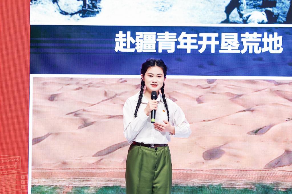 来自浙江大学的邓惠文同学深情讲述了40后的姥姥作为援疆干部毅然离开江南水乡奔赴戈壁屯垦戍边、80后的姐夫抛下优厚薪资赴吐鲁番援疆支教的感人故事,号召青年同学带着专业知识奔赴祖国的“新边疆”,书写新一卷的时代奇迹。