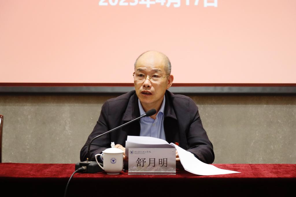胡征宇指出,今年是贯彻落实党的二十大精神的开局之年,在全党深入开展学习贯彻习近平新时代中国特色社会主义思想主题教育,是党中央用党的创新理论统一思想、统一意志、统一行动,动员全党同志为完成党的中心任务而团结奋斗所作的重大部署。习近平总书记的重要讲话精神,从新时代新征程党和国家事业发展全局的战略高度,深刻阐述了开展主题教育的重大意义和目标要求,对主题教育各项工作作出全面部署,为全党开展主题教育提供了根本遵循。他指出,2002年10月,习近平总书记刚到浙江工作不足一个月就来校调研,了解师生思想动态,亲自指导解决学校发展重大问题,为学校发展把舵定向。习近平总书记来校调研时的重要指示精神,是我们开展主题教育独特的思想富矿,要带领全校师生追寻总书记的足迹,感悟新思想的伟力。