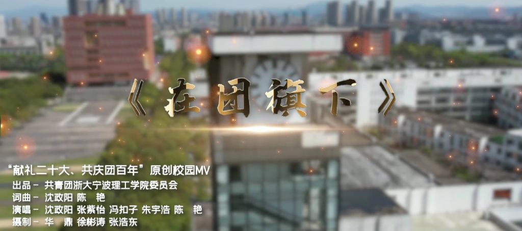《在团旗下》原创MV作为青春献礼党的二十大专辑的主打歌曲,从词曲、旋律到MV制作均由学校师生原创打造。歌曲以“青春跟党走、奋进新时代”为主题,旋律活泼生动,情绪饱满丰富,充分展现了浙大宁理青年蓬勃的朝气、奋斗的姿态、向上的活力。
