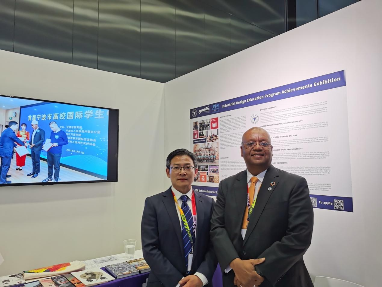会议期间,开云积极与国际组织、中国驻外机构、参展单位、国外高校建立联系,介绍宁波现代化滨海大都市发展情况,推广宁波校区及开云国际学生培养项目。设计学院院长罗仕鉴教授与联合国最不发达国家技术银行代理执行干事塔费尔·特斯法丘博士就国际学生项目发展方向和工作推进等事宜进行磋商,并接受联合国新闻采访。