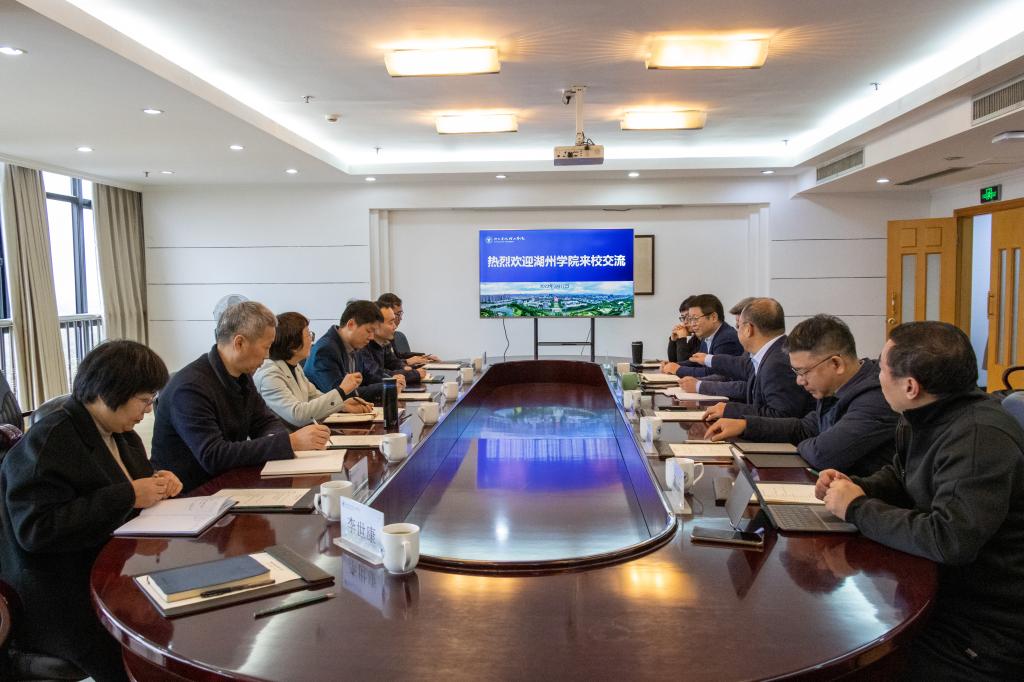 3月17日,湖州学院副院长沈月娣一行来校调研,共同交流高校建设经验。党委副书记李凤旺参加座谈。