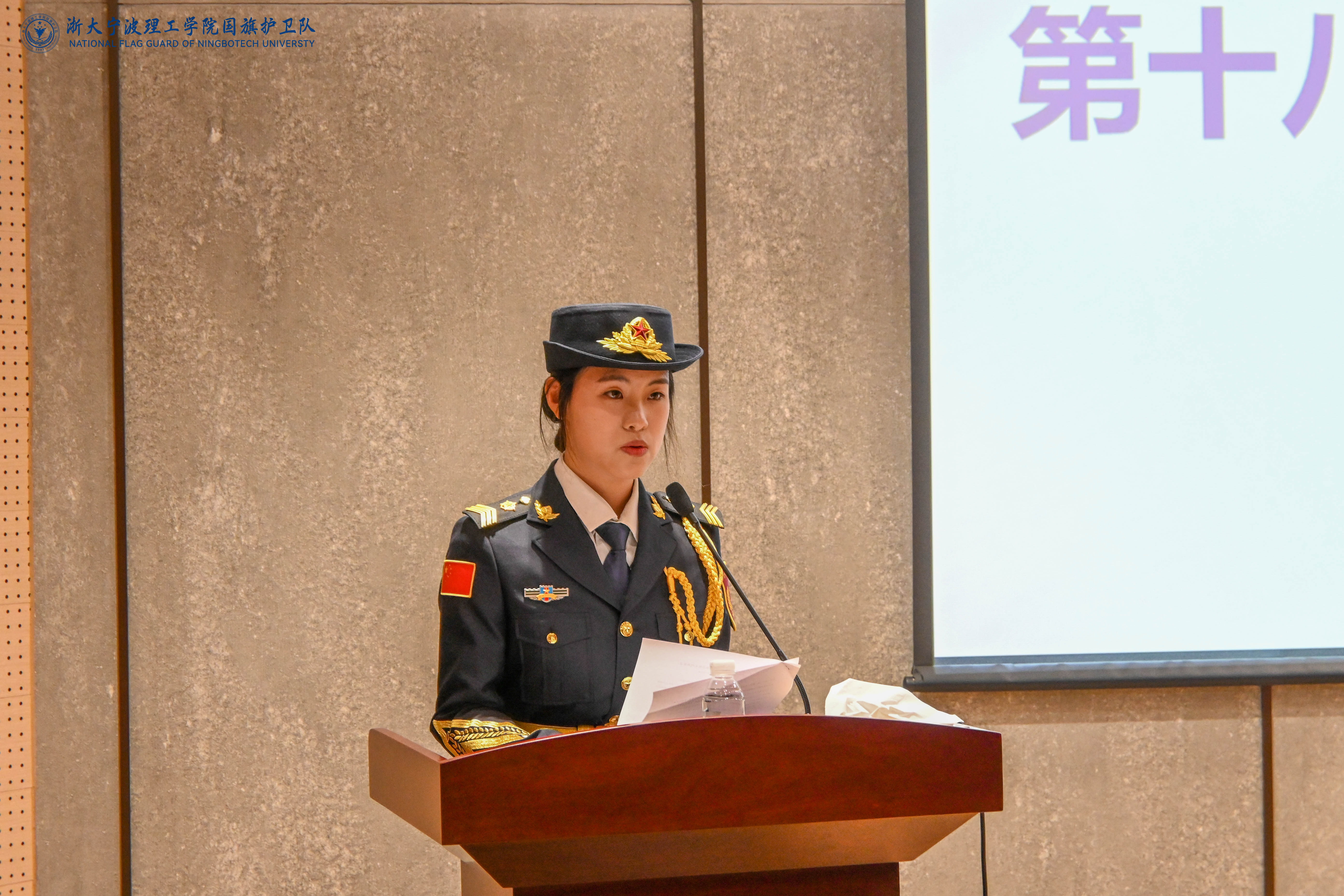 袁乐表示一定会继续团结队员,改进工作,牢记“团结护旗,矢志报国”队训,让爱党爱国的红色传统在队内永续弘扬!执行队长代表项可菡表示,将带好每一次训练、完成一次任务,刻苦奋斗,矢志不渝。新队员代表陈涵伊讲述了入学以来在国旗队的心得体会,从踢腿、走正步、走齐步的队列训练,到学长学姐都的细心指导。她表示,全体新队员们将扛起新的使命和责任,守护国旗荣光。