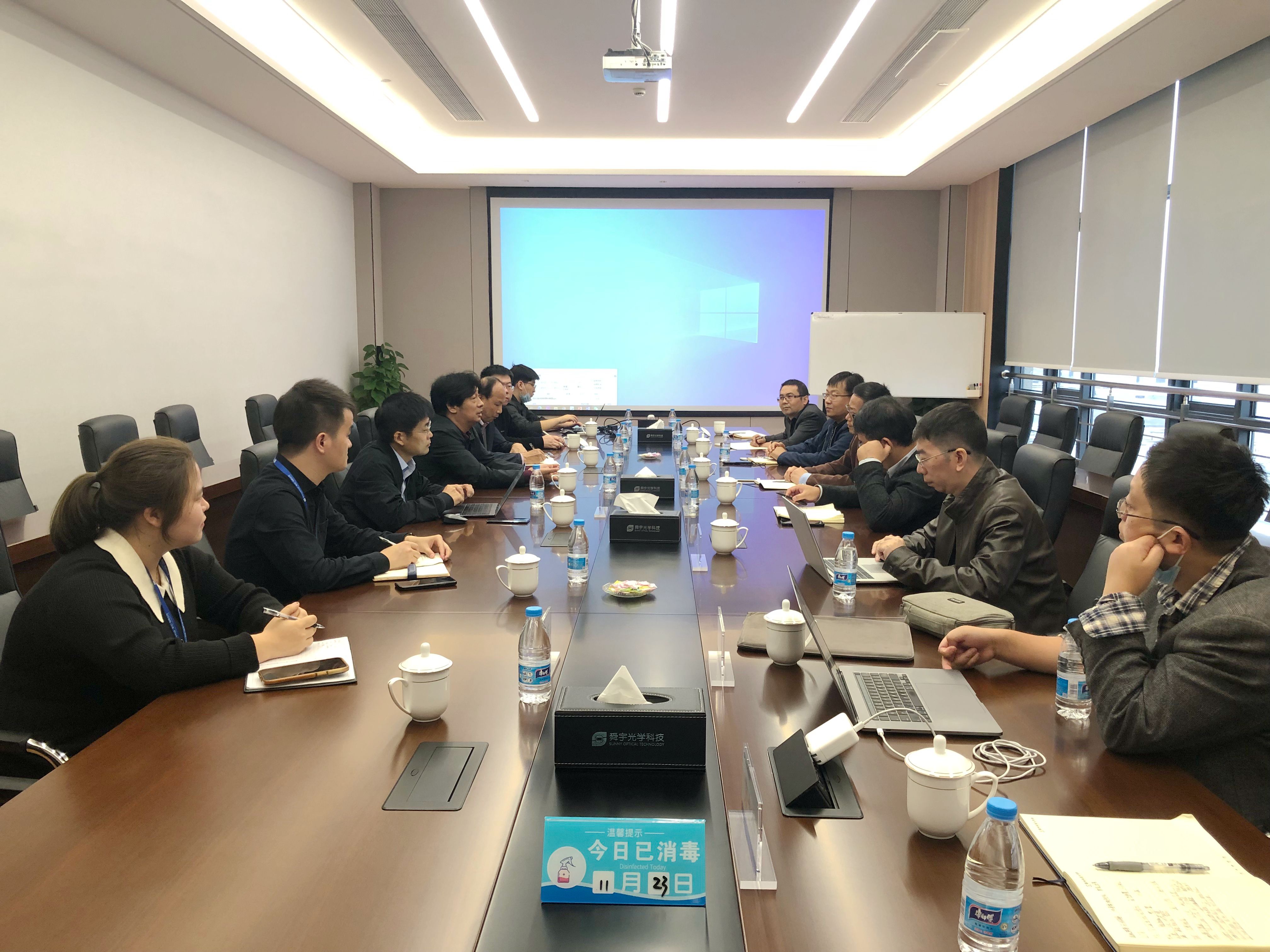 11月24日下午,副校长鲁东明率科研处和招就处相关负责人、二级学院对口领域专家一行赴舜宇光学科技(集团)有限公司开展合作交流。舜宇集团执行董事及常务副总裁王文杰、战略发展中心总监殷浩、中央研究院所长张本好、人力资源部部长焦树坤等热情接待,共商合作。