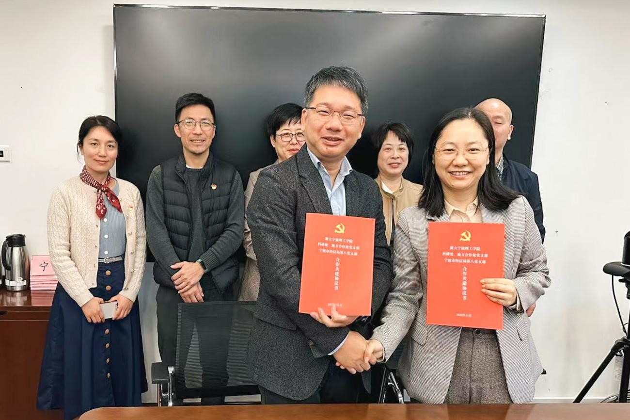 为深入学习贯彻党的二十大精神,进一步创新党建形式,提升党建工作成效,11月4日,科研处、地方合作处党支部与宁波市经信局第八党支部在宁波市经信局会议室举行结对共建签约仪式。双方将以“理论共学、组织共建、合作共享”三方面内容为着力点,探索构建优势互补、资源共享的党建共建长效机制。