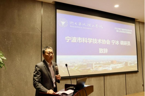 10月28日下午,2022年宁波研究生学术节第七分会场论文报告会在启新大讲堂举行。宁波市科学技术协会调研员宁冰、学校副校长鲁东明出席并致辞;学校研究生处、学生处、科研处等单位负责人及在校研究生、本科生代表80余人参加此次活动。