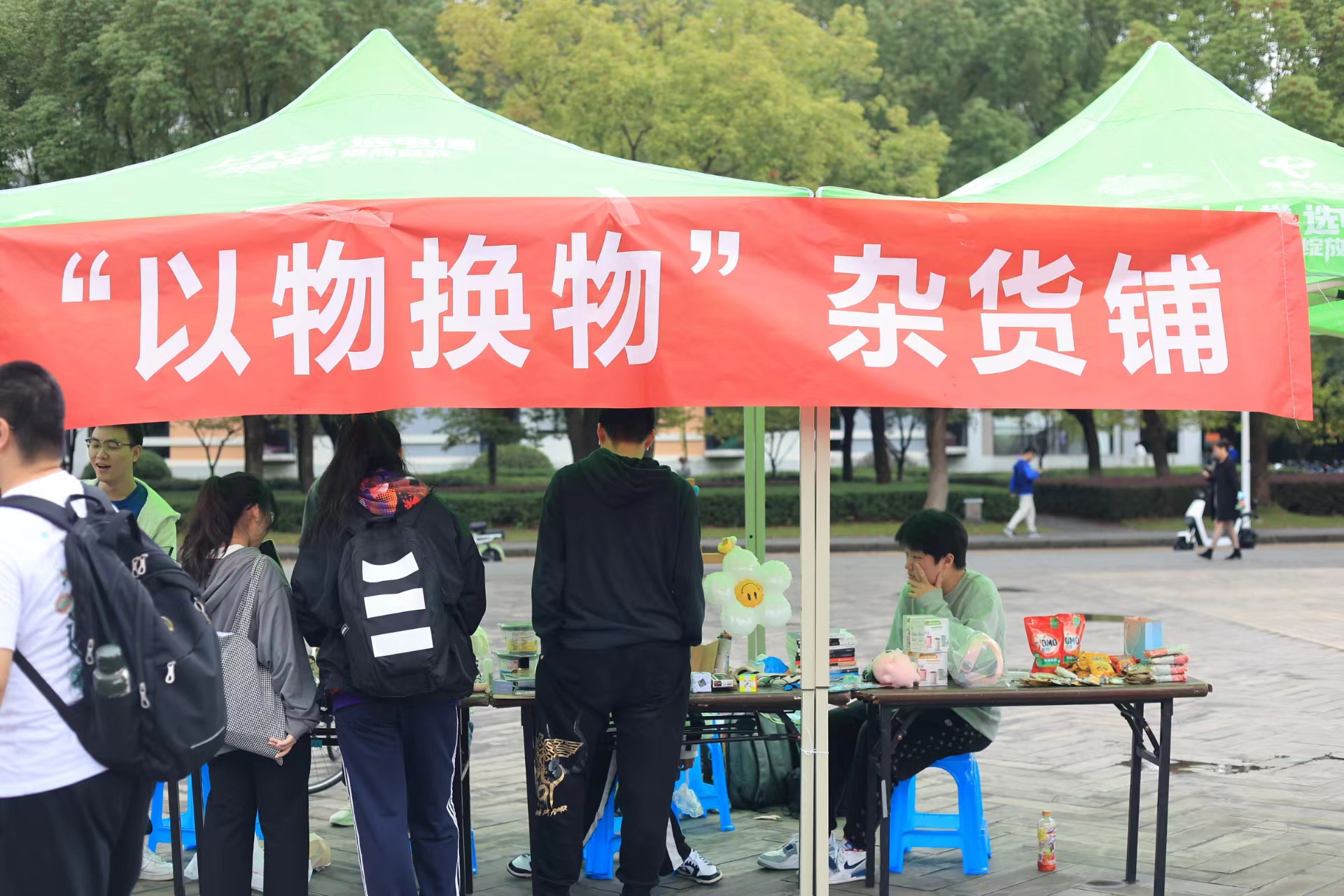 “以物换物”杂货铺前,各类琳琅满目的物品吸引了师生们的关注,大家开心地换取各类心仪物品,提供服务的同学表示“有些自己闲置不用的东西说不定可以让别人眼前一亮!看到一件物品可以反复为不同的人带来价值,感觉特别有意义”。“爱眼护眼”摊位为师生们提供镜片清洗、擦拭以及眼镜鼻托更换暖心服务,许多同学体验后表示:“我都不知道我的眼镜原来这么脏!感觉换了副新眼镜,世界一下就从标清切换成了超清!”“朝颜证件照”摊位为师生拍摄下一件件靓丽的证件照,“太方便了!最近忙着考研、实习都来不及去拍新的证件照,这个项目真的是及时雨!而且拍照修图的同学特别有耐心,这真的是我拍过的最满意的证件照,太感谢了!”一位大四的同学表示。“人体彩绘”摊位旁围了好几圈人,摊位上的服务人员高效细致地调配着颜色,在同学们身上大胆描绘他们心仪的图案,异彩纷呈。“之前只在社交软件上刷到过这种项目,这还是第一次自己体验!真的特别好看特别有创意!”刚接受完服务的同学展示这自己手臂上的彩绘兴奋地说。“BMI值测试”摊位上更是为同学们带来定制版健身方案,让大家获取了专业的健康生活规划。