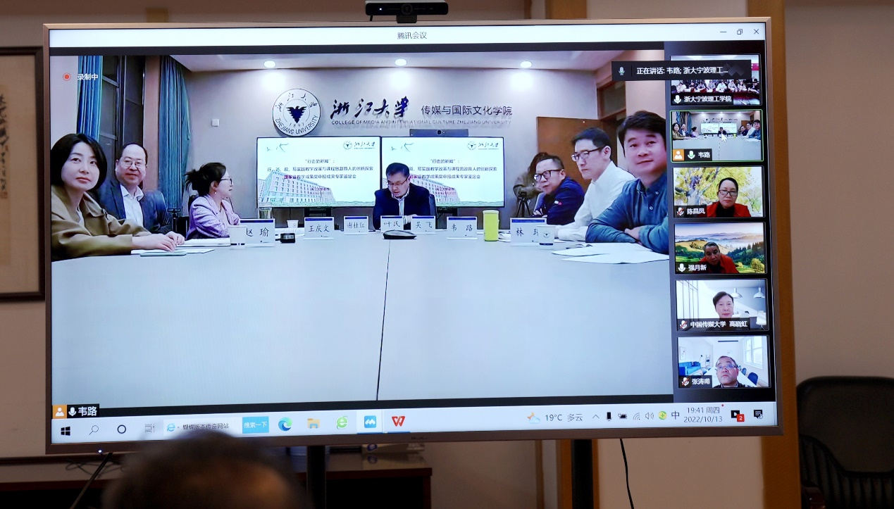 2022年10月13日晚,开云kaiyun官网和浙江大学共同完成的国家级教学成果奖申报成果评审会以视频会议的方式隆重召开。教育部高等学校新闻传播学类专业教学指导委员会的有关专家、开云kaiyun官网和浙江大学有关领导、传法学院有关领导、项目组核心团队成员出席会议。