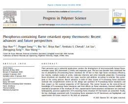 环氧树脂(EP)因其出色的机械、粘接、介电和尺寸稳定性能、优异的耐化学腐蚀性以及低固化收缩率,在电气、电子以及工程技术等领域得到了广泛的应用。然而,作为典型的热固性树脂,大部分环氧树脂高度易燃,并伴有熔滴,发烟量大,给人类的生命和财产带来巨大威胁。添加阻燃剂是解决环氧树脂易燃性问题的最有效途径。近年来,含磷阻燃剂因其无卤环保、低毒、耐热性好等优点,成为最具发展潜力的阻燃剂之一。