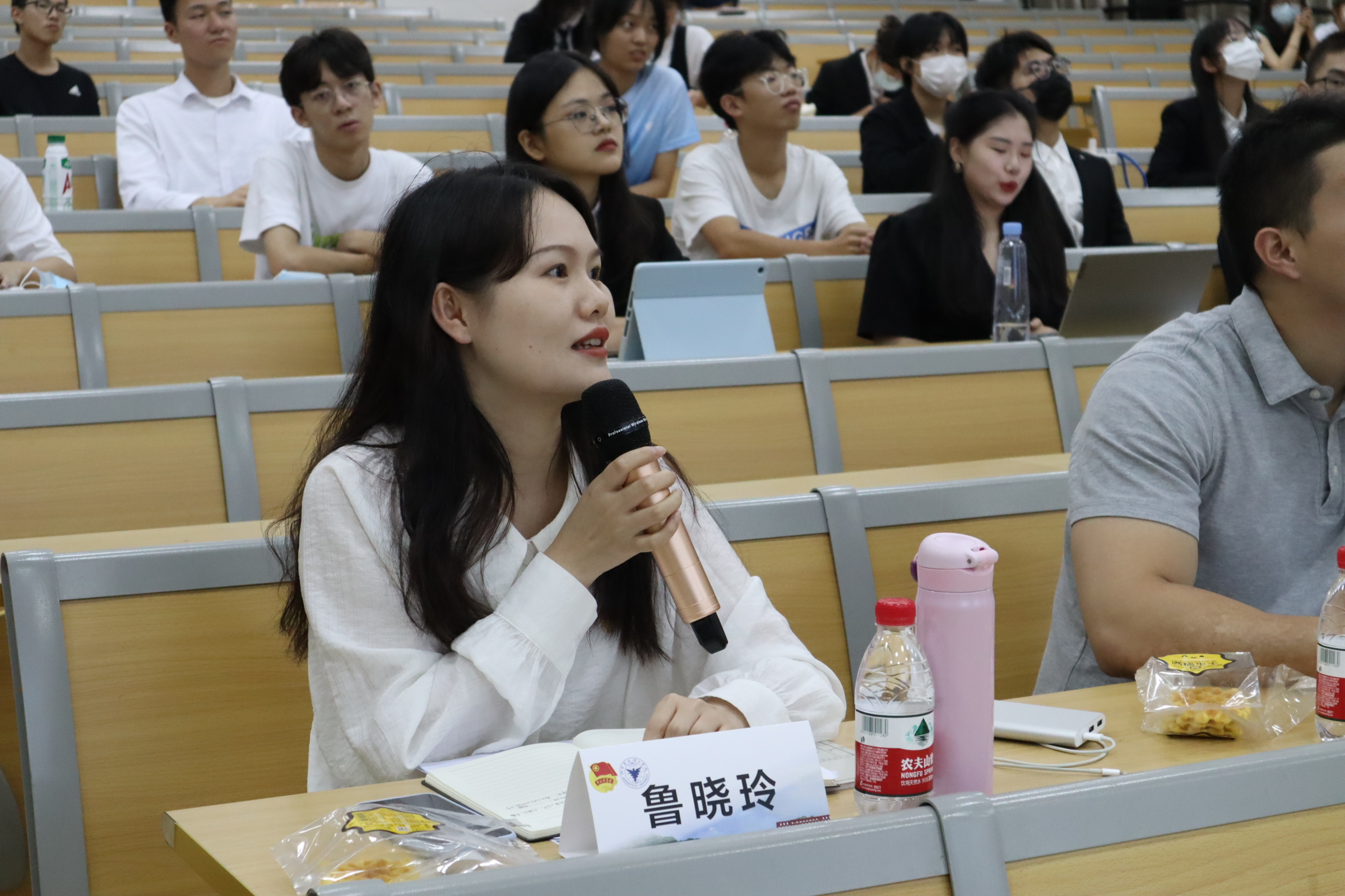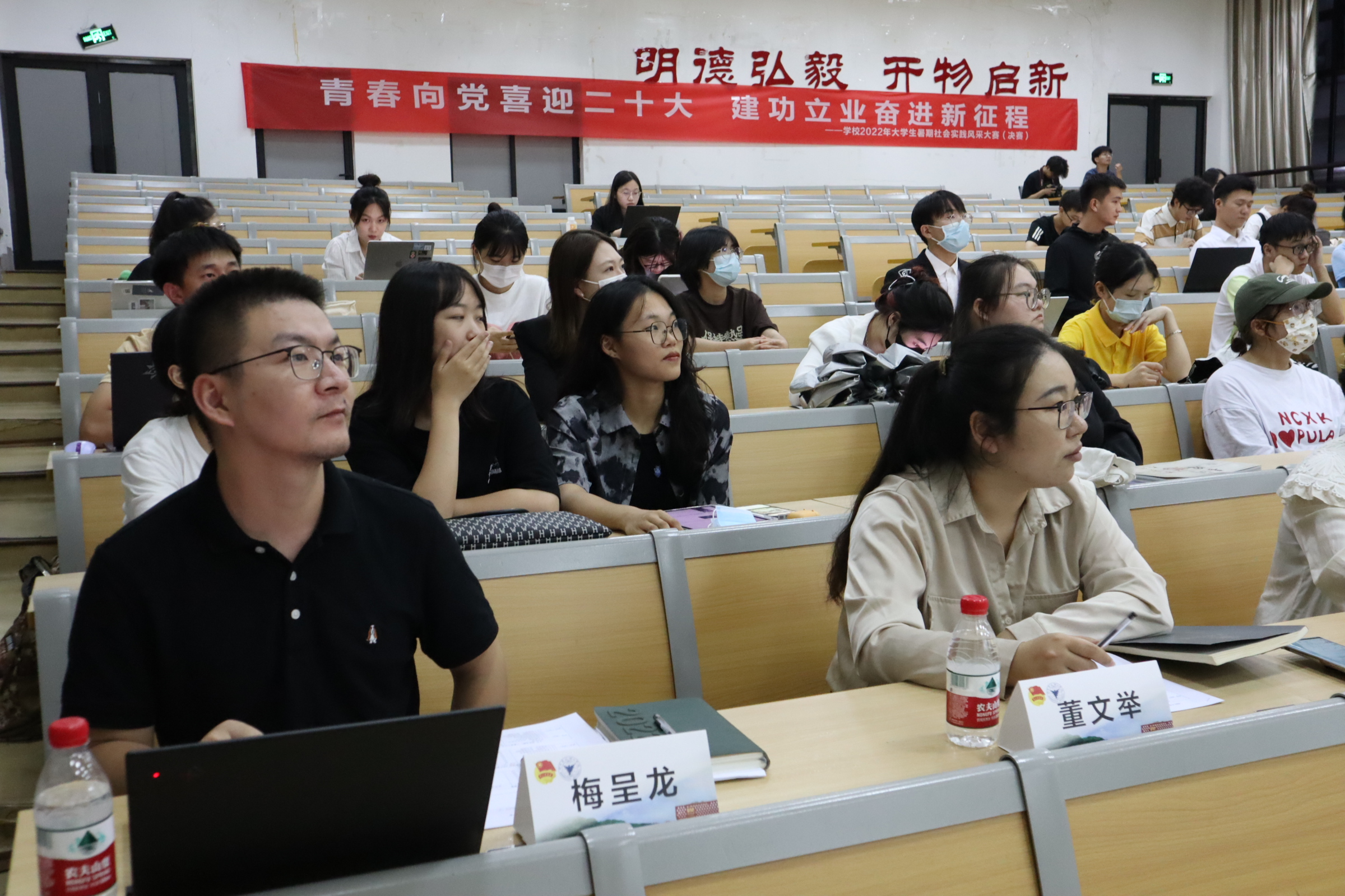 风采大赛现场,各团队采用PPT、视频、现场歌唱等丰富多彩的方式,从实践背景、项目意义、实践过程、实践成果等方面,重现实践场景、讲述实践心得、展示实践成果。“守疆戍边,共富中国”民族团结实践团紧随习近平总书记的新疆足迹,寻访西部计划校友、调研宁波援疆项目,让青年看见新疆、感受民族大团结的重要意义;开云kaiyun官网“弘毅”支教团通过现场旗语展示,讲述在内蒙古鄂托克旗第四小学(熬勒召其海军希望小学)的支教故事;“喜迎党的二十大,问道民生行”实践团百名青年深入家乡以青春视角探社会民生,调研共同富裕、乡村振兴、教育公平、基础设施建设等政策的实施和落实;艺术与思维的碰撞“材”绘党史画卷实践团将专业与艺术相结合,用艺术来描绘党的光辉历程,展现出材料学子心中的党史蓝图;流动的党课:“芯青年”科技助力乡村振兴暑期社会实践团以追寻“光 的三原色:红、绿、蓝”为主题,描绘了青年学子在余姚市梁弄镇、鄞州区咸祥镇、新疆库尔勒市三地开展红色梁弄、蓝 色咸祥、绿色库尔勒的乡村振兴故事。青春研“习”团组建四支队伍分赴鄞州、余姚、舟山、丽水,通过学“习”语录,找寻青春答案。