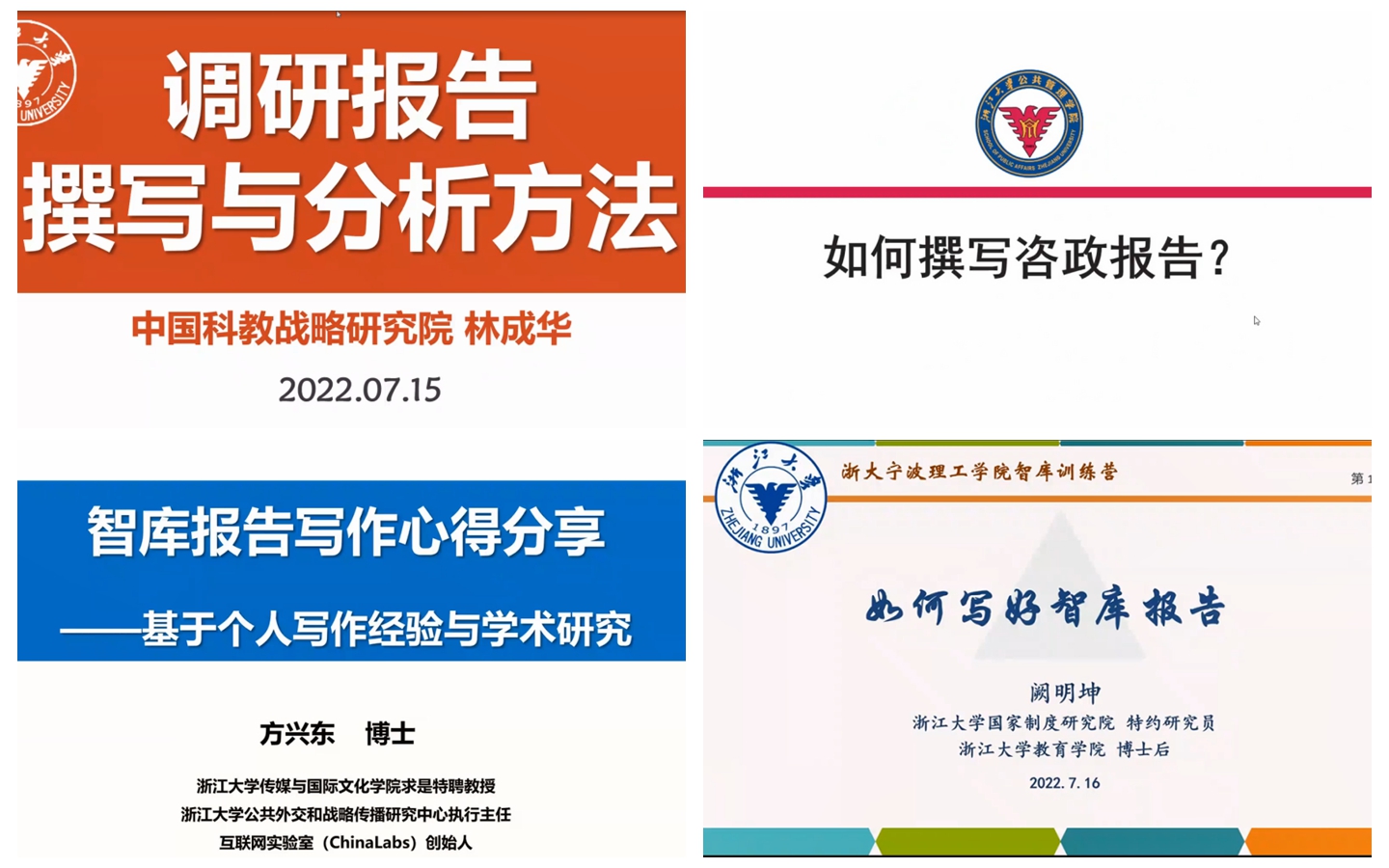 从2022年6月底发起报名至2022年9月公布结果,大赛共历时两个多月,期间分为智库要报写作训练营、专家评审和推荐三个阶段。写作训练营阶段,大赛主委会邀请了著名专家林成华教授、徐林教授、方兴东教授、阙明坤教授进行了为期两天的线上培训。整个培训环节,专家们各有特色、极富专长,倾囊相授,极大提高了教师们内参写作的水平和资政热情。之后专家评审环节,各专家首先对参赛老师的选题进行了指导,随后对收到的38篇智库要报稿件进行了细致入微的点评,并给出了鞭辟入里的修改建议。最终,大赛评选出一等奖3名,二等奖7名,三等奖8名。获奖作品将结合专家意见进一步打磨后,推荐到省部级、国家级等决策部门要报或内参。