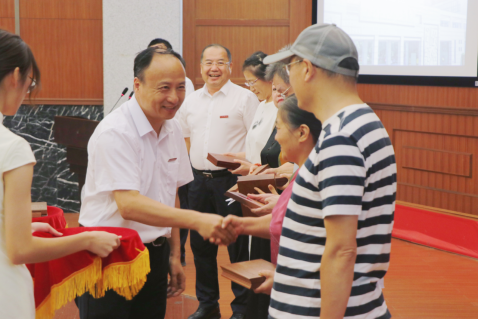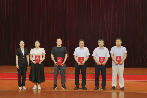 李凤旺、冯建波为退休教师代表颁发荣休纪念章