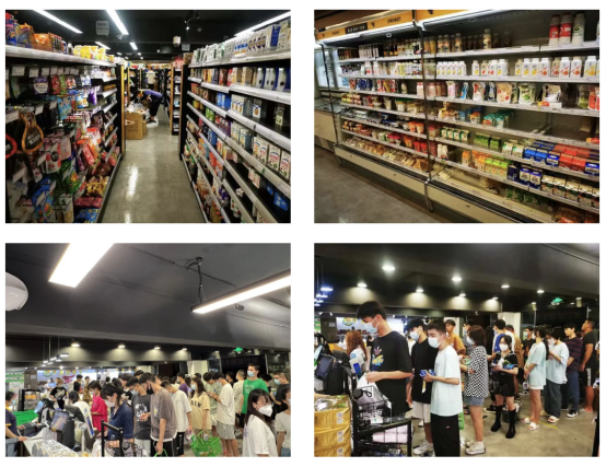 为了保障在校师生的生活所需,校内超市等增加物资储备,同学们自觉排队有序购物,目前校内各超市物资充足、品种丰富。