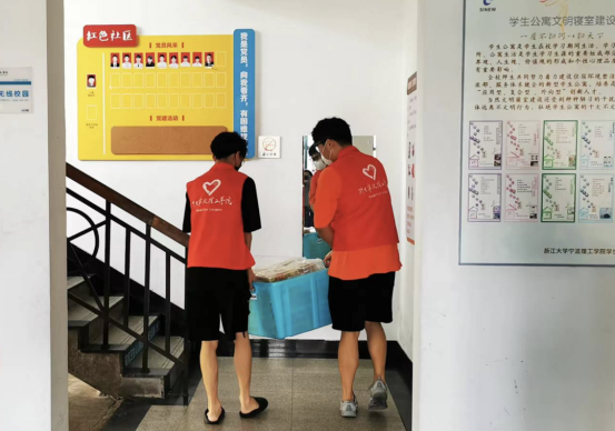 学校内静态管理的楼层,由网格员负责运送三餐,和饮用水等基本生活物资。他们24小时在线,随时待命,全力以赴保障静态管理学生的生活和健康,确保不漏下一名学生、一间寝室。
